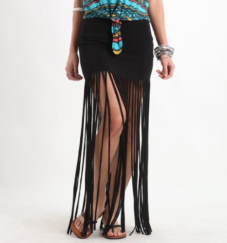 DIY fringe maxi skirt. Cut to the length of your choice. Includes instructions on tag. 41" length. 12" top hem length. Measured from a size small. Model is 59" and wearing a size small.